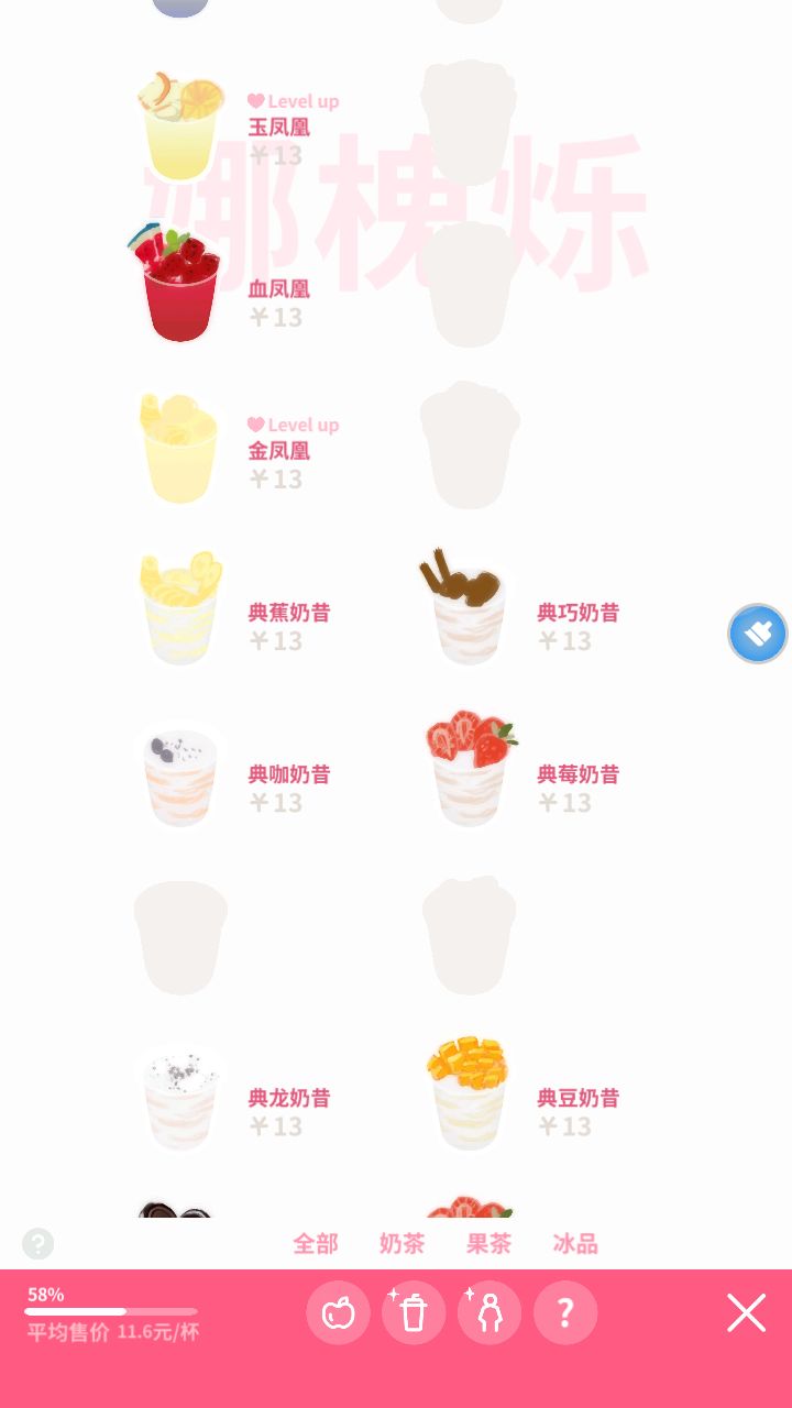 我觉得,我可能真的太闲了,玩了几小时,给大多数奶茶名(没起的想把那部分收集全再好好考虑)