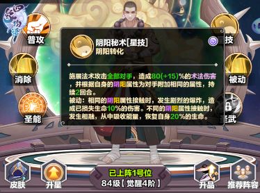 觉明的消除技会转换自身的阴阳属性,攻击时有几率为对手留下阴阳印记,相同属性接触时会对敌方造成百分比伤害,而不同属性接触时则会回复自身百分比生命值,可谓攻守兼备。