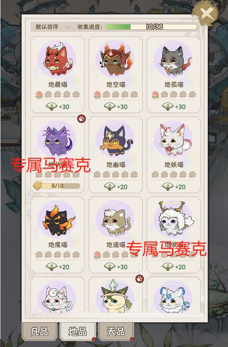 在本帖内回复你御猫收集进度的截图(凡品、地品、天品都可以)。