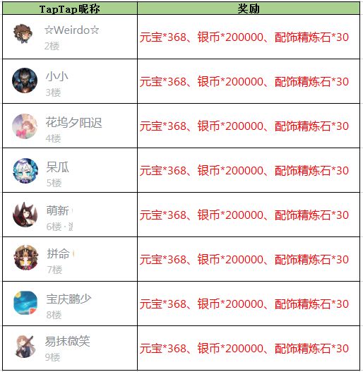 恭喜以下8位少主获奖!![[嗒啦啦2_新年好]](https://img-tc.tapimg.com/market/images/6ec3c3994084e0de0a8dd9c936f90638.gif)