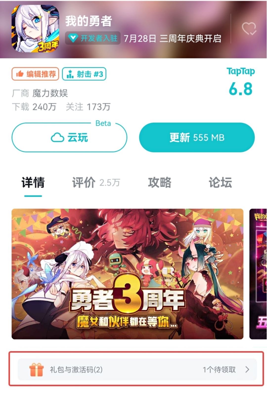*由于TapTap平台限制,只能在TapTap App中才会显示【礼包与激活码】。