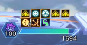 ①残阳印记:后羿头上会有一个类似金色太极图标,并且标有数字(如下图第二排第一个,代表后羿现在有6层残阳印记)