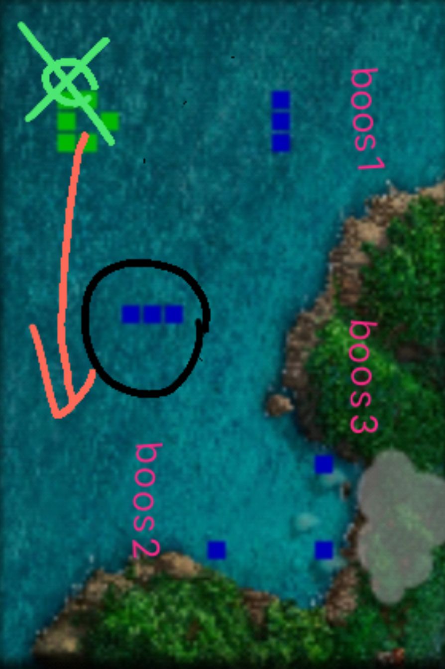 还有一种,开局灭了6条鲨鱼后留一个镶玉在左下拖着鲨鱼,不要太下,不然拖不住两条,也不要太上,不然第一波boss开局把你秒了。大部队集体又移,别问我走多远,你走不远。右边鲨鱼过来不用杀,两个镶玉卡走位就行了。左上第一个boss是忍者牛哥带忍者大队,等他们移动下来输出人员回去剁了他们,必须秒,不秒他们就完蛋,忍者都是变态。第一波打完,右边出弓手boss,同样,打死他,注意,自虐难度他是魔免,休闲好像也是。第三只boss在小岛上,带三个忍者,也是魔免,打死boss过关。