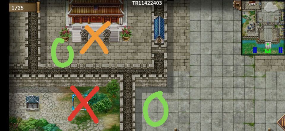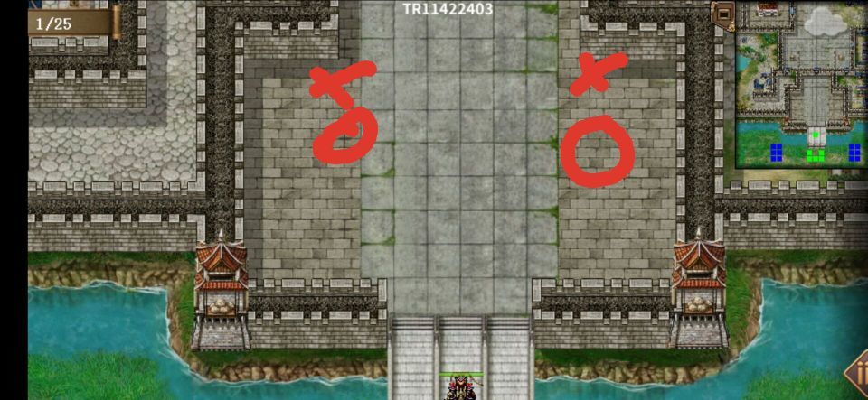 伏兵4:女王出现回合开始,有人接近城外桥头回合结束时出现,左右各一个剑客,位置如下