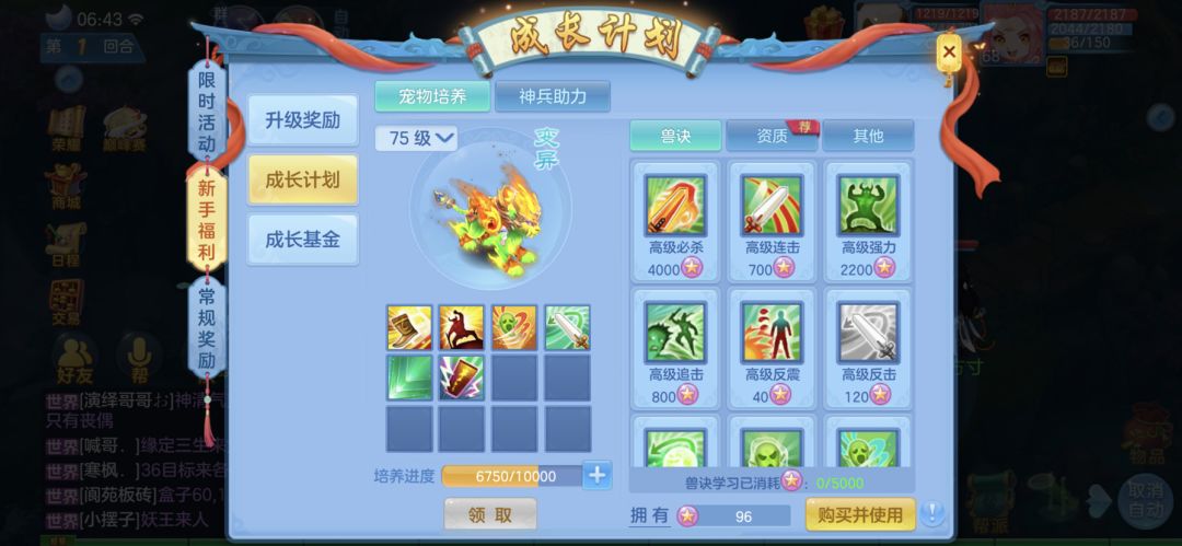 我的成长计划宠物培养进度为什么这么慢?