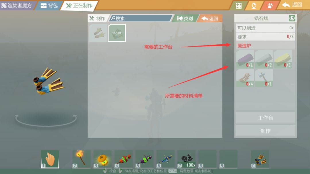 A:想要制作物品或工具,首先要打开【正在制作】,这里有非常详细的工具、道具分类,根据个人需要点击对应的按钮或图标进入查找(或直接输入词语进行搜索)。