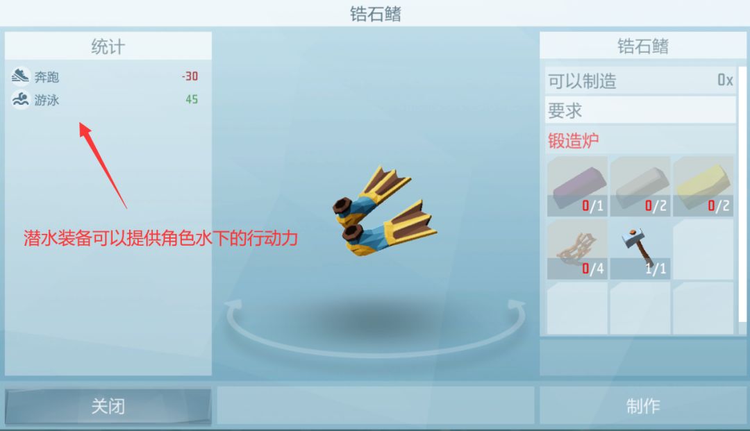 A:初期可以制作“海藻脚蹼”,只需要“海藻纤维”、“木棍”、“任何刀”就可以制做出来了,随着科技进步后期可以制作更加高级的潜水装备。