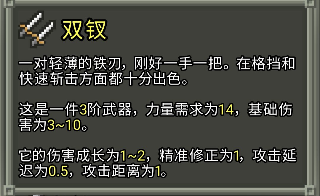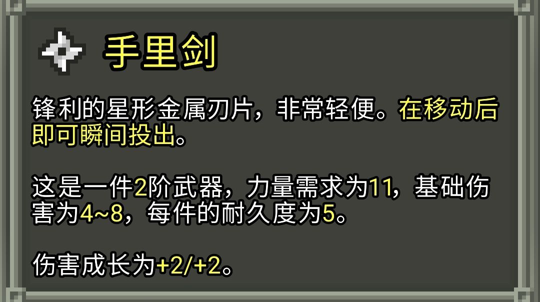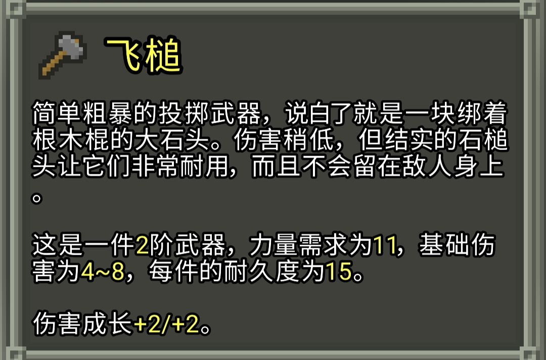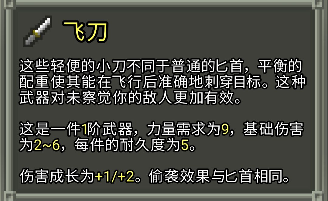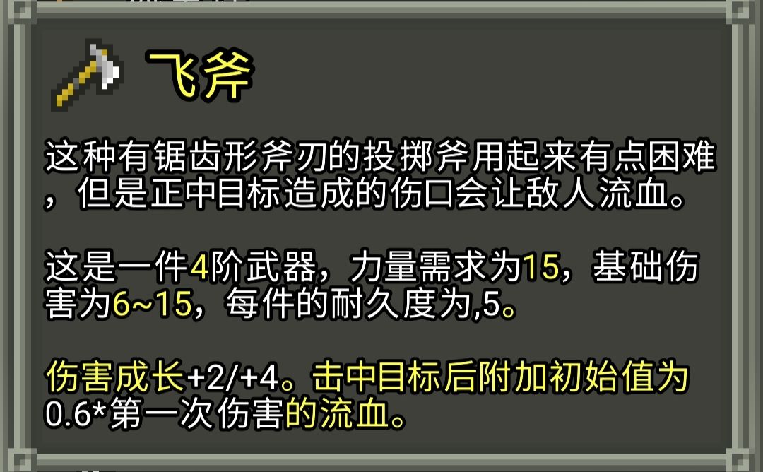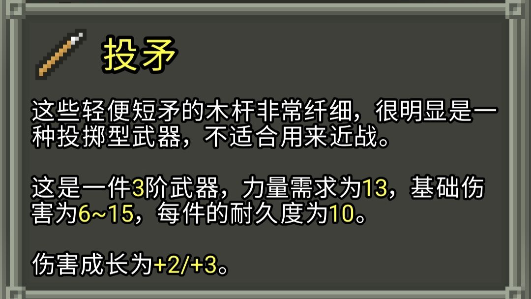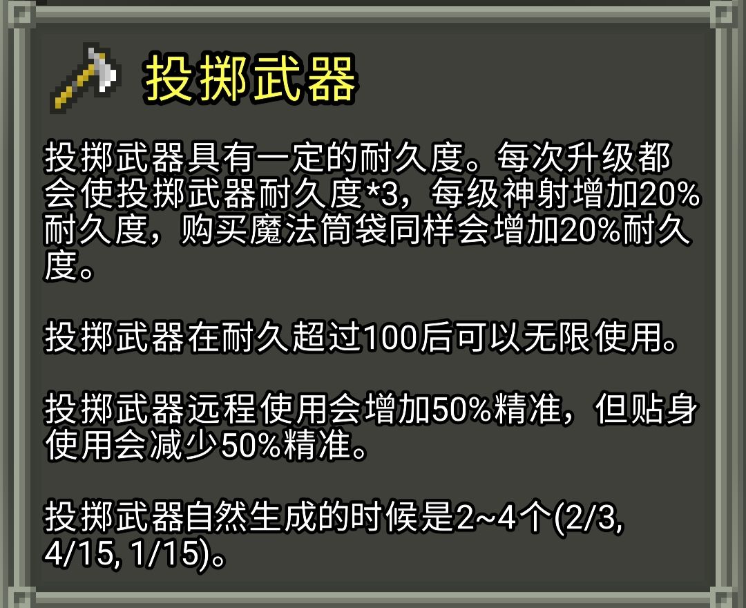 武器及投掷武器的一些机制和数值