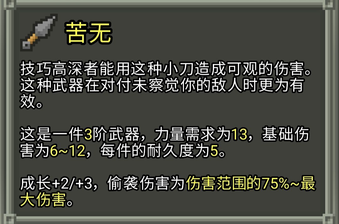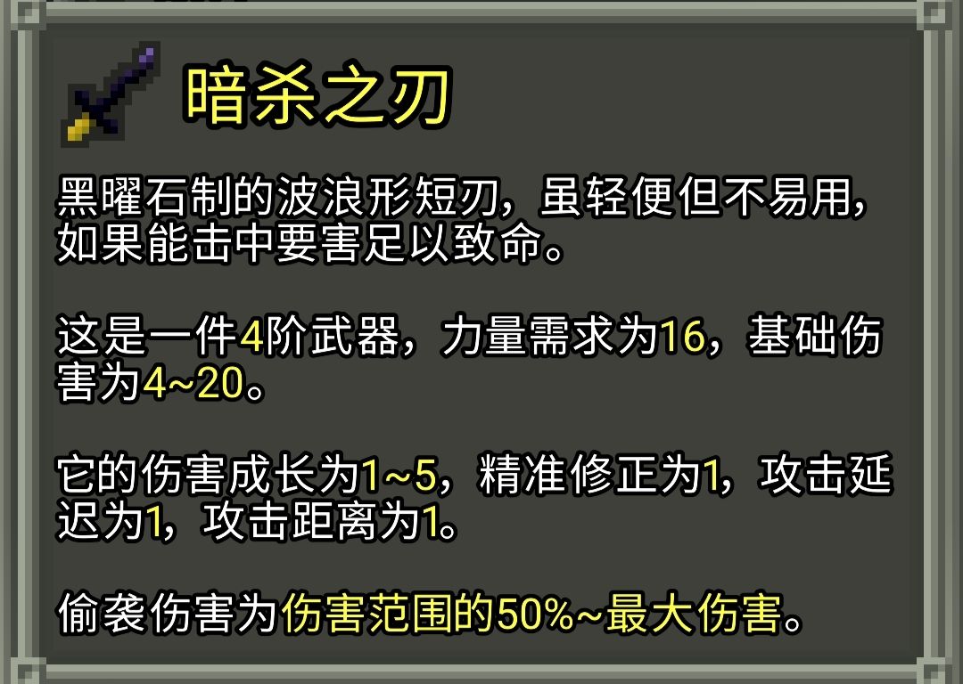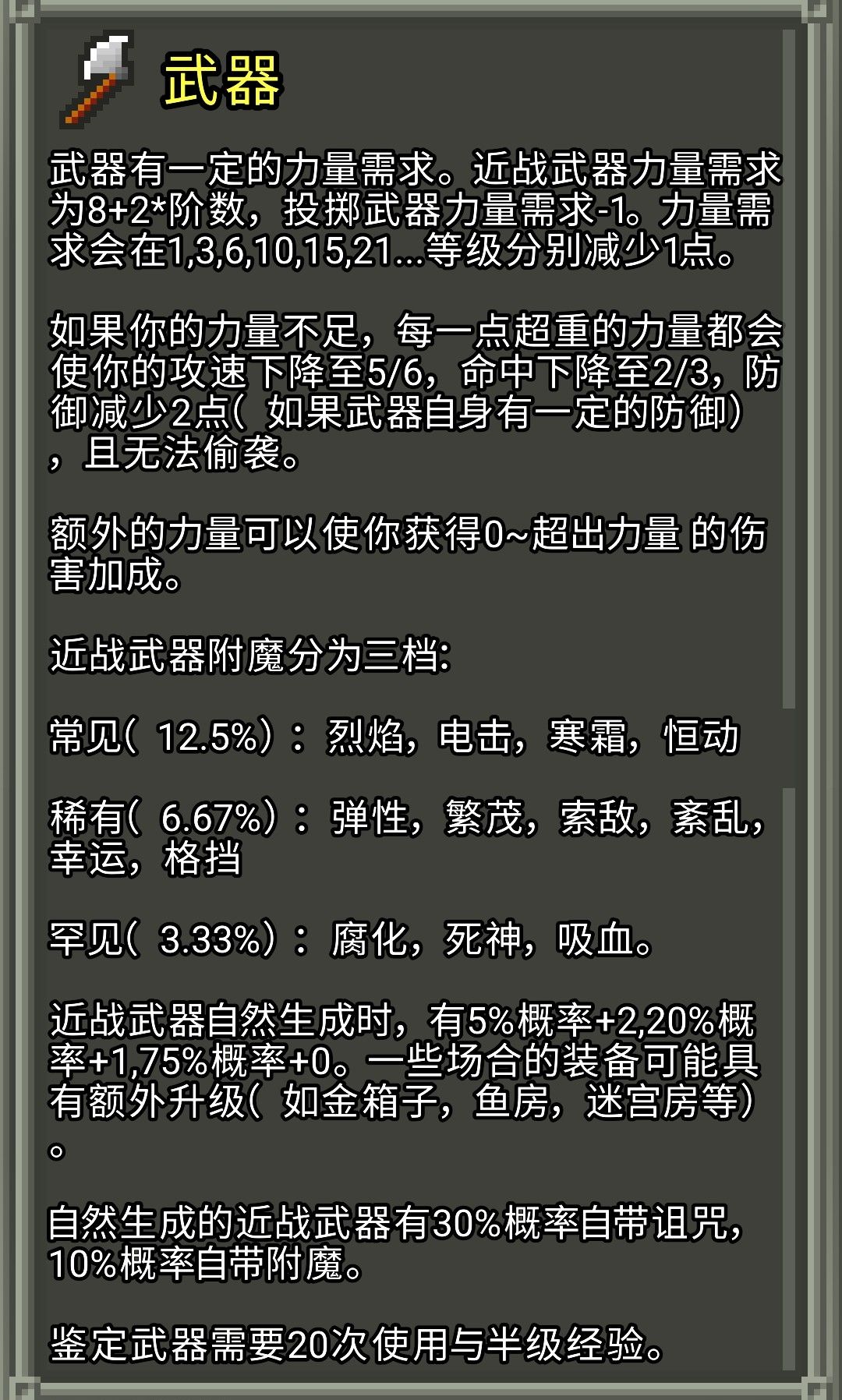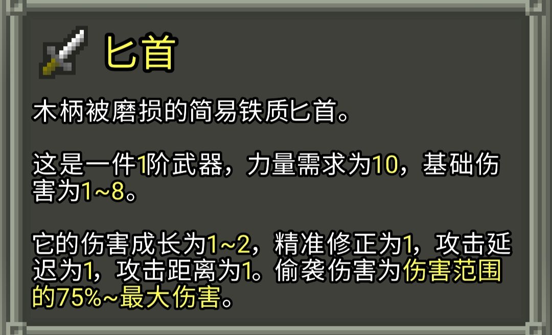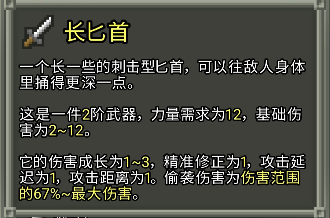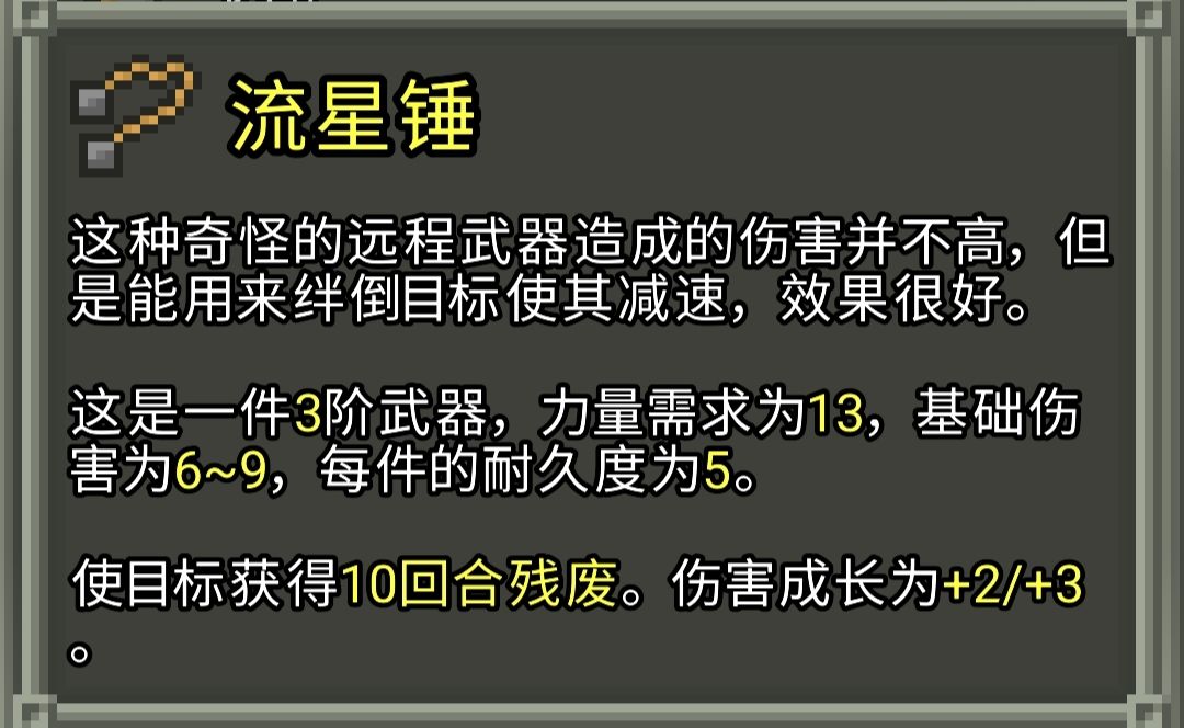 武器及投掷武器的一些机制和数值