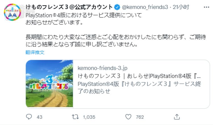 在接下来的两个月里,游戏被困在了名为“维护”的无尽轮回之中。直到昨天,官方终于亲口承认了“修复BUG非常困难”,解决手段也有些“不太现实”。在一番深思熟虑之后,他们做出的选择是直接关停PS4版的服务器。如此一来,《兽娘动物园3》PS4版实际上只有不过10天的寿命。