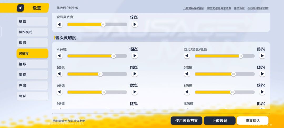 这是我的全局、镜头、陀螺仪灵敏度