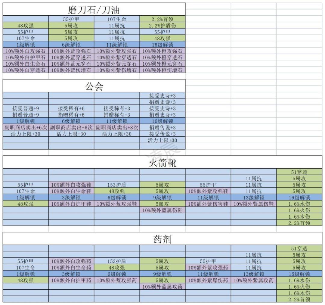 刀油/磨刀石:缺穿透的情况下穿透最强,其他情况下:伤害增幅>元素穿透>攻击强度