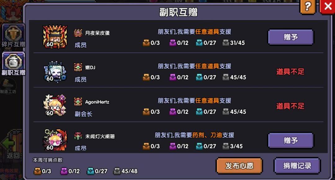 职业互赠,发布心愿炼金术士就选火箭靴,机械师就选药剂;最好是找一个和你不同职业的互送,能稳定赚货币还有材料