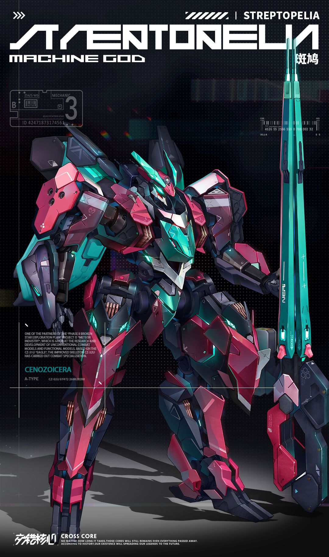 「斑鸠」为「流星工业」在机体CZ-51U「鹫鹰」的基础上针对战斗系统特化之后的改良版。搭载了以清洁的NOVA能源驱动的高能高集成激光炮,以及多功能反无人机智能系统。在战场上主要用于战略制空与对地面火力支援。