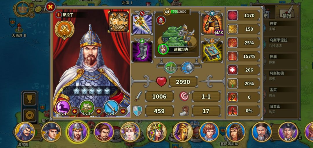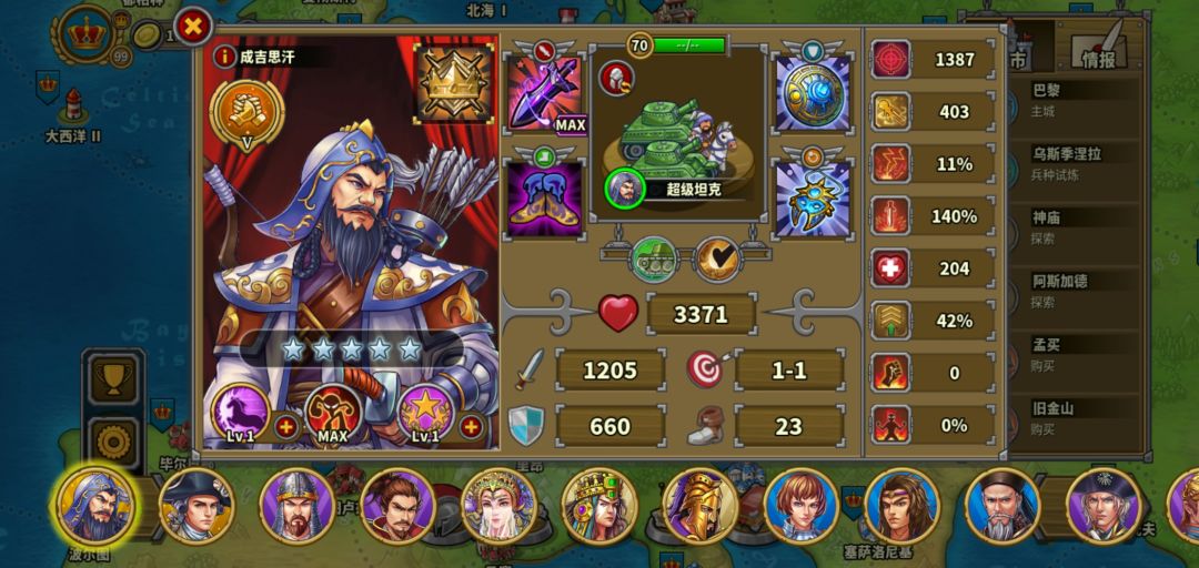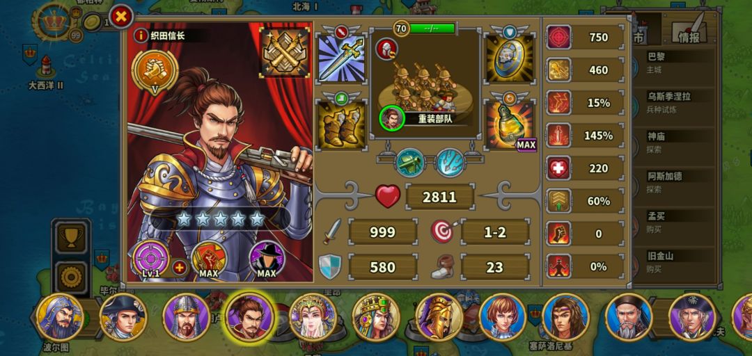 2.2、敌人的奖励越多不代表难度越高,奖励是根据综合情况?防守战波数?或者其它原因定的,但大多数情况是和难度成正比,建议每个点进去看一看。我今天碰到的一个117就只放了5个将领,城墙等级也很低,还没104的高,剩下的奖励在100左右的基本都是能横扫的,没几个将领。