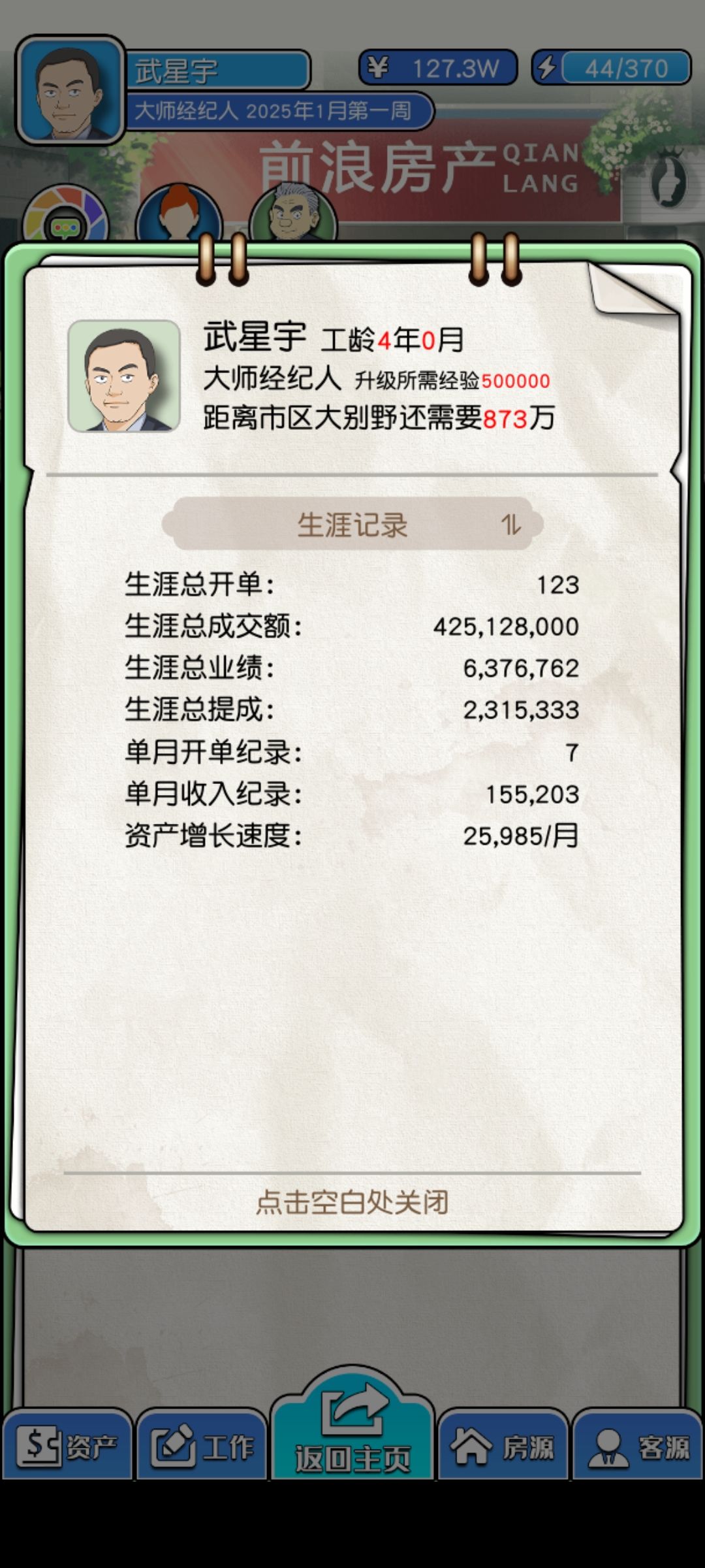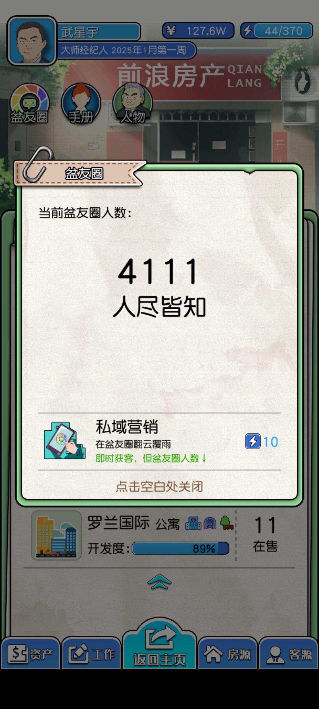 7.重点就是不要在带客户上浪费太多体力,多去维护房子,总结就是:开发小区>扫房>驻守>寻找客户