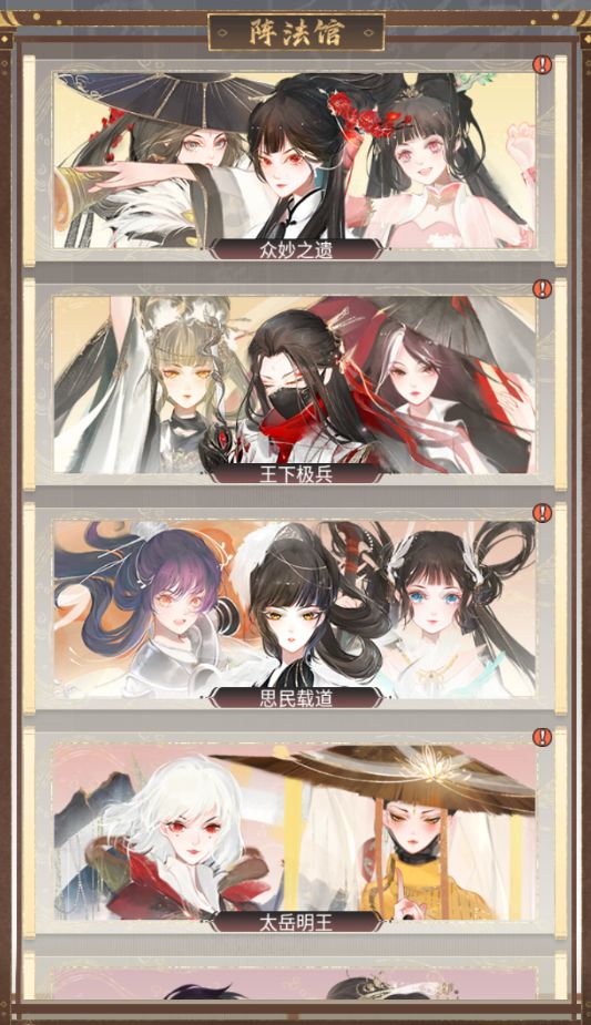 1、 阵法羁绊开启,上阵不同武娘获取额外加成效果,增加养成乐趣。