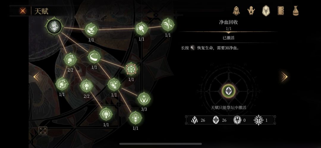 前期处决与偷袭可以回复少量的净血,后期点了处决和偷袭可以补充魔药和净血的天赋以后会变得更好用。