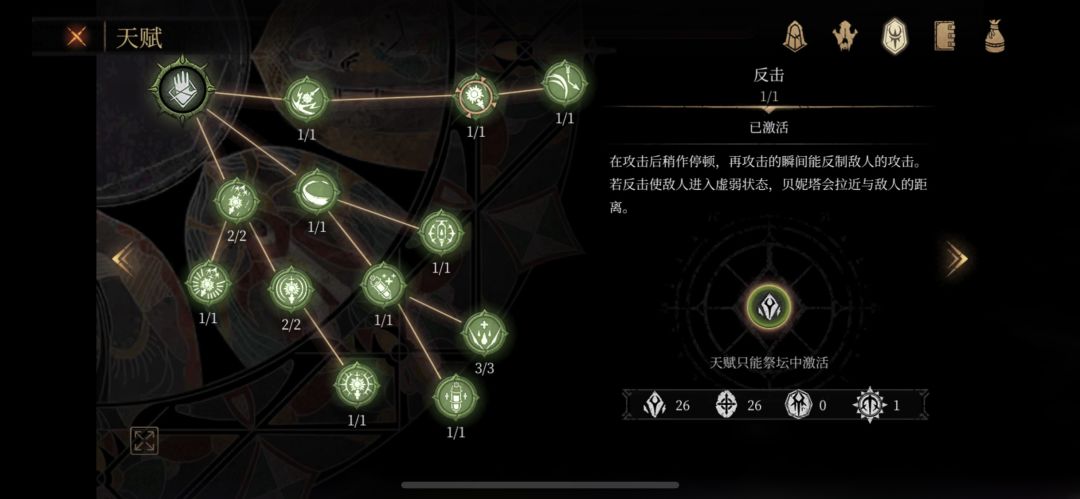 若是成功弹到攻击则会触发第二段“反”,“反”具有打断敌人后续攻击的效果并对敌人造成伤害并“获得”净血! (这个净血如果有怒气涨幅增加的天赋会获得更多)