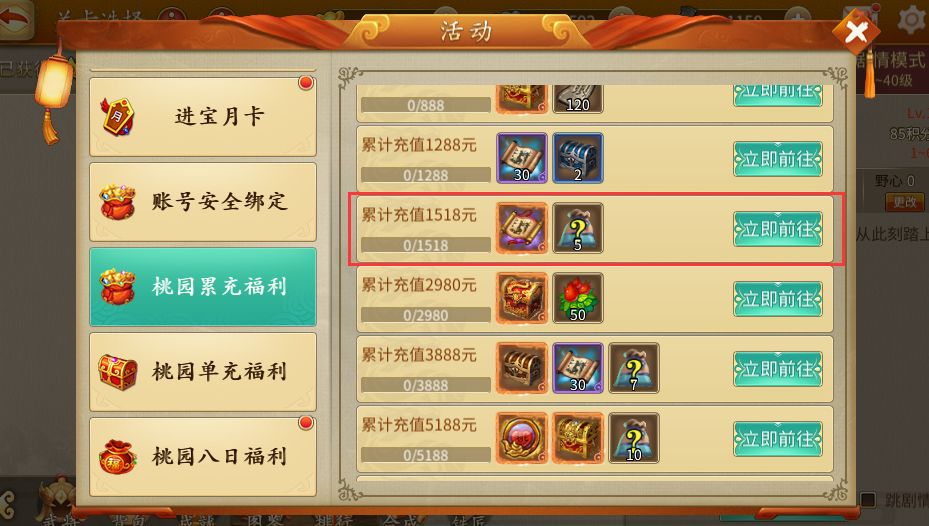 5188档,获取绝版宝物【桃园纪念章*瑞】,拥有拥有不俗移动力增加,精神力加成、连策增伤。