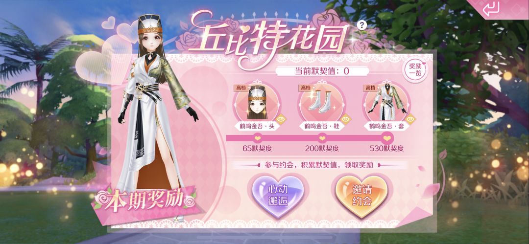 66划重点:本期丘比特花园也已经更新奖励服饰啦!小主人们开启相关约会任务后,将获赠一套高档时装【鹤鸣金吾】!英姿飒爽你值得拥有~