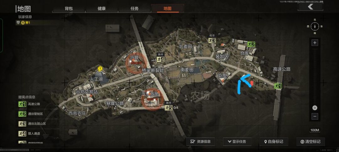 大家应该能从马厩的右边看到一个条件撤离点吧,我们撤离的主要点就靠它(猎人通道)他的撤离要求是不能携带背包