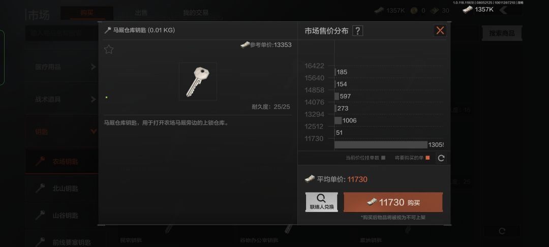 里面的一楼楼梯旁桌子,二楼的外套,高级工具箱,还有最最最重要的文件箱(可以出情报哦~)以及电视桌上有概率刷的相框,导致这个钥匙是必赚的(没有几乎!)因为25次的次数加上其离我们的跑刀撤离点并不远的缘故,我愿称之为永远为正面的硬币