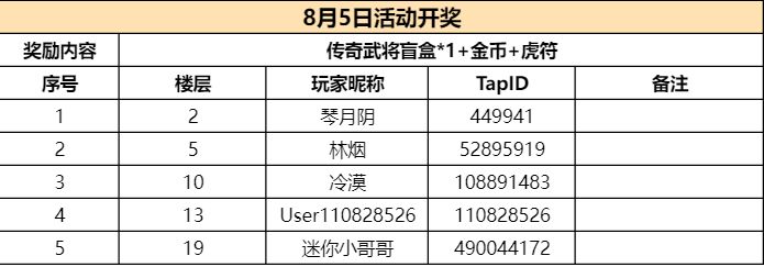 开奖啦!恭喜“琴月阴”、“林烟”等5位小伙伴获奖,请根据楼中楼的回复添加客服小姐姐的QQ,并提交活动链接、游戏昵称、游戏ID、Tap个人主页截图等信息兑奖~