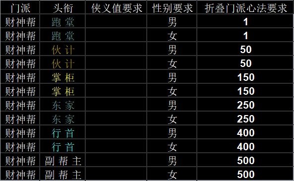 门派攻略 - 财神帮