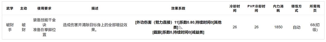 破财手:自动解锁的截脉技能,罕见的拳脚截脉,技能重数提升优先级较高。