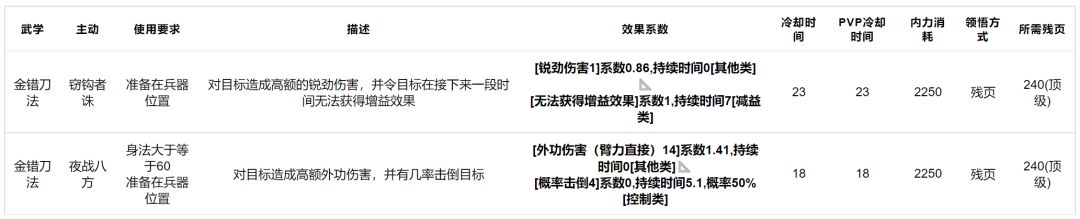 武学详解:(武学等级为技能残页的等级)