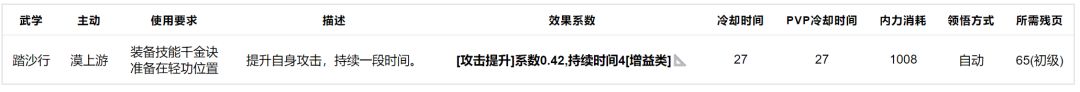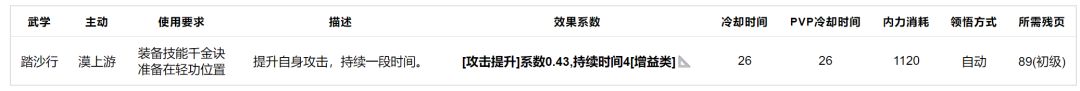 踏沙行:单技能轻功,效果系数都不是很好,入门级武学。