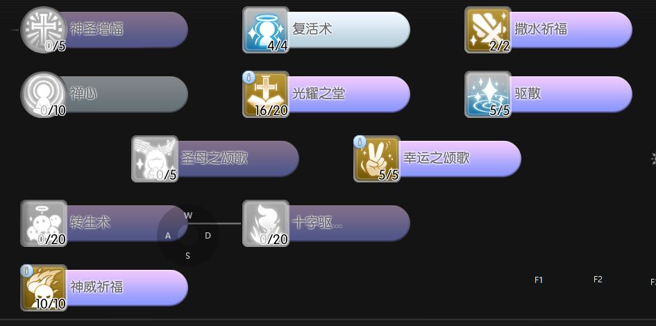 副本用的最多的技能,基本都是这两排,如果有敏骑爸爸,加上洒水,祷告,天怒这些技能。