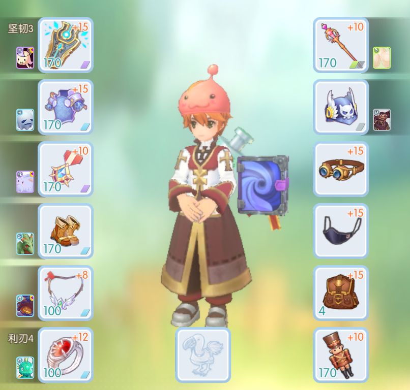 右边的装备,你可以看上面的,其实找加生命上限或者抗性的就可以。。附魔HP或者治疗,当然最好是HP+治疗。很多扭蛋啊,装备啊那些都可以。提示,这期时光机可以兑换装备,如果其他需要什么搭配的,欢迎咨询,或者加wx,可以帮你上号看看。