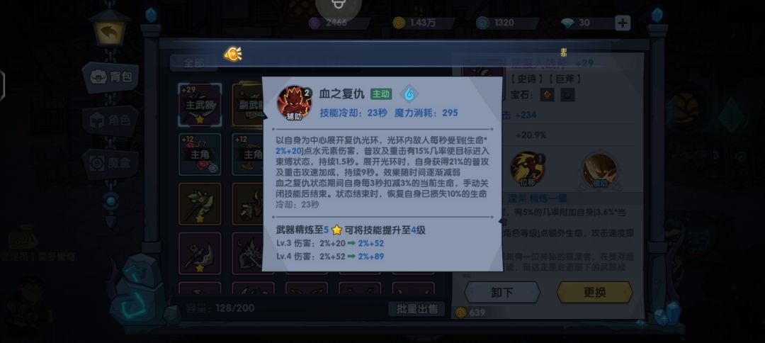 有血之复仇 防御加技能等级 主武器还是副武器等级 看技能位置