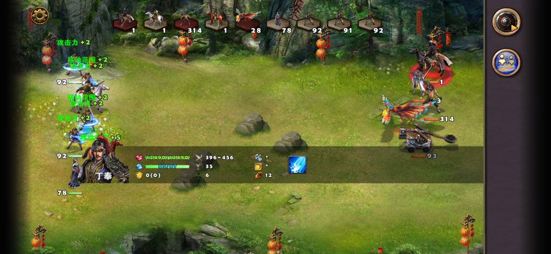 通常情况下刘备穿射手套射手站两边。在配个诸葛或者关羽,开局射手射boss然后再来清理小兵,但是丁奉就不能这样打除非你有自信一回合清空不然就先打小兵,等小兵清理完了最后打丁奉!原因是丁奉的被动技能