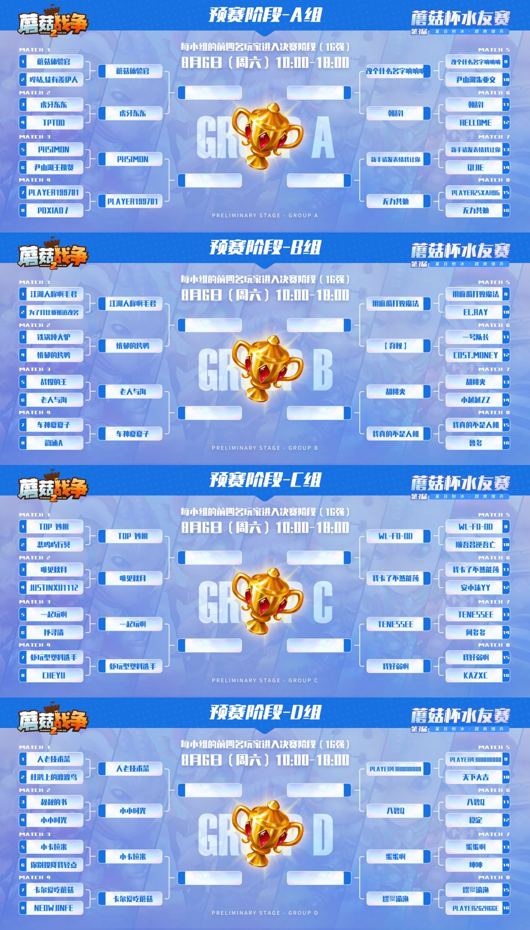 【赛事播报】第三届『蘑菇杯』水友赛32进16
