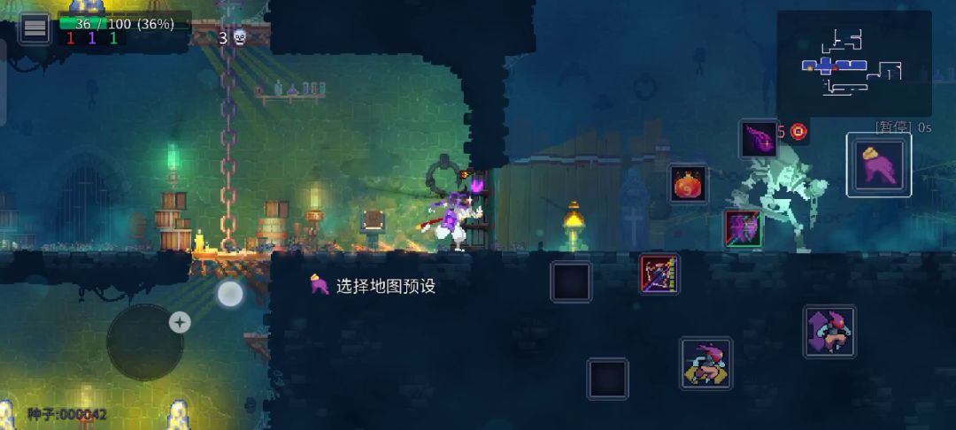 ⑥地图左下方为选择细胞数(难度),右下方为所用时间。在初始房、剧情房、宝箱房等会暂停。