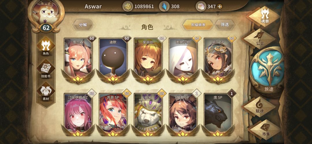 回坑玩了两天,新东西好多,一时间接受不来,想先培养一下角色,求大佬帮我看看