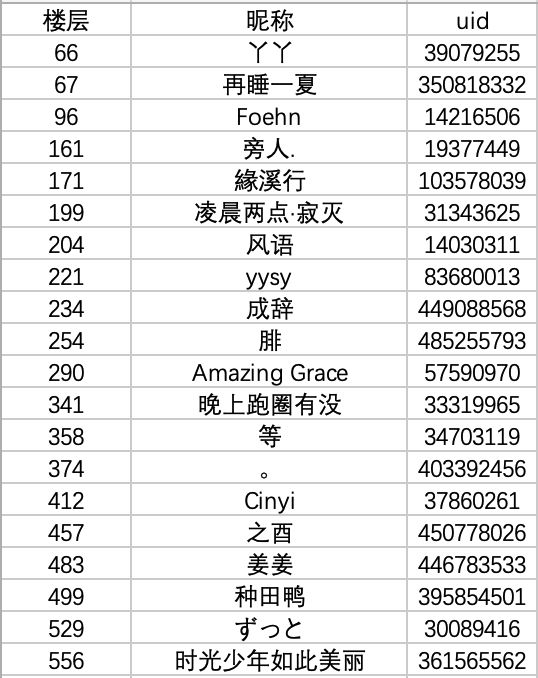 中奖用户分别是: