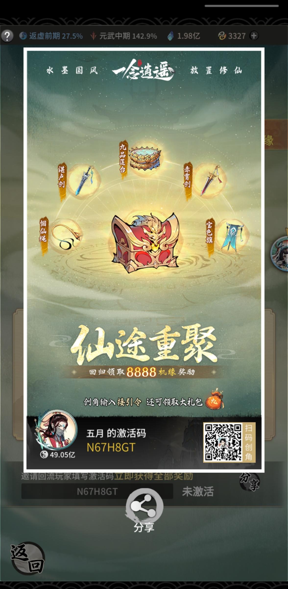 回流玩家召回高级密令:N67H8GT,进游戏既可领取8888机缘以及金色古宝!