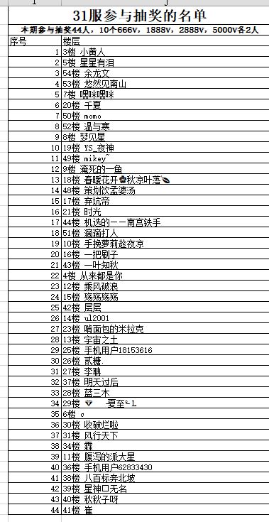 31区盖楼活动开奖啦!结果公布,获奖的大大可以凭盖楼截图领奖了!