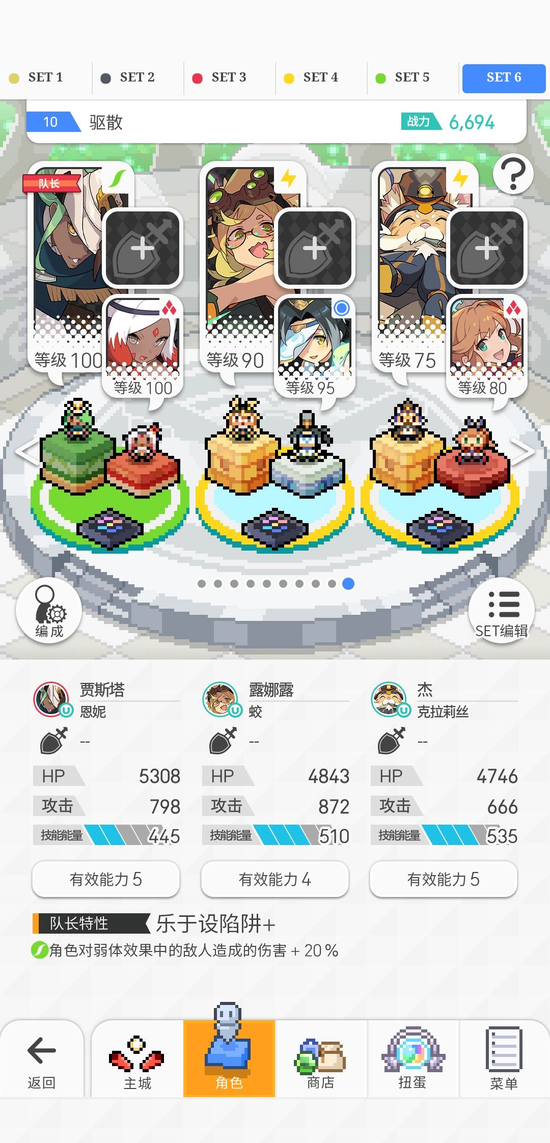 四郎带队绝对没问题的,方天画戟可以换成羁绊枪的(如果你是假的萌新的话),方天画戟错过了的话,就放菜刀,珠子也菜刀就行。 二号位,天狗带的深层弓,主要是sub,必须是驱散角色,因为有的大佬喜欢抢车头吹水水,可能不带驱散,所以萌新必带,不想练这个风角色的可以用万化。 最后一个位置奶妈,风奶是最好的,没有就用风伯,这也没有,或者直接和二号位sub的风驱散换位置换其他的奶妈,sub技工,风技工or猫头鹰。如果你用了带浮游的,就可以换上浮游斧了。
