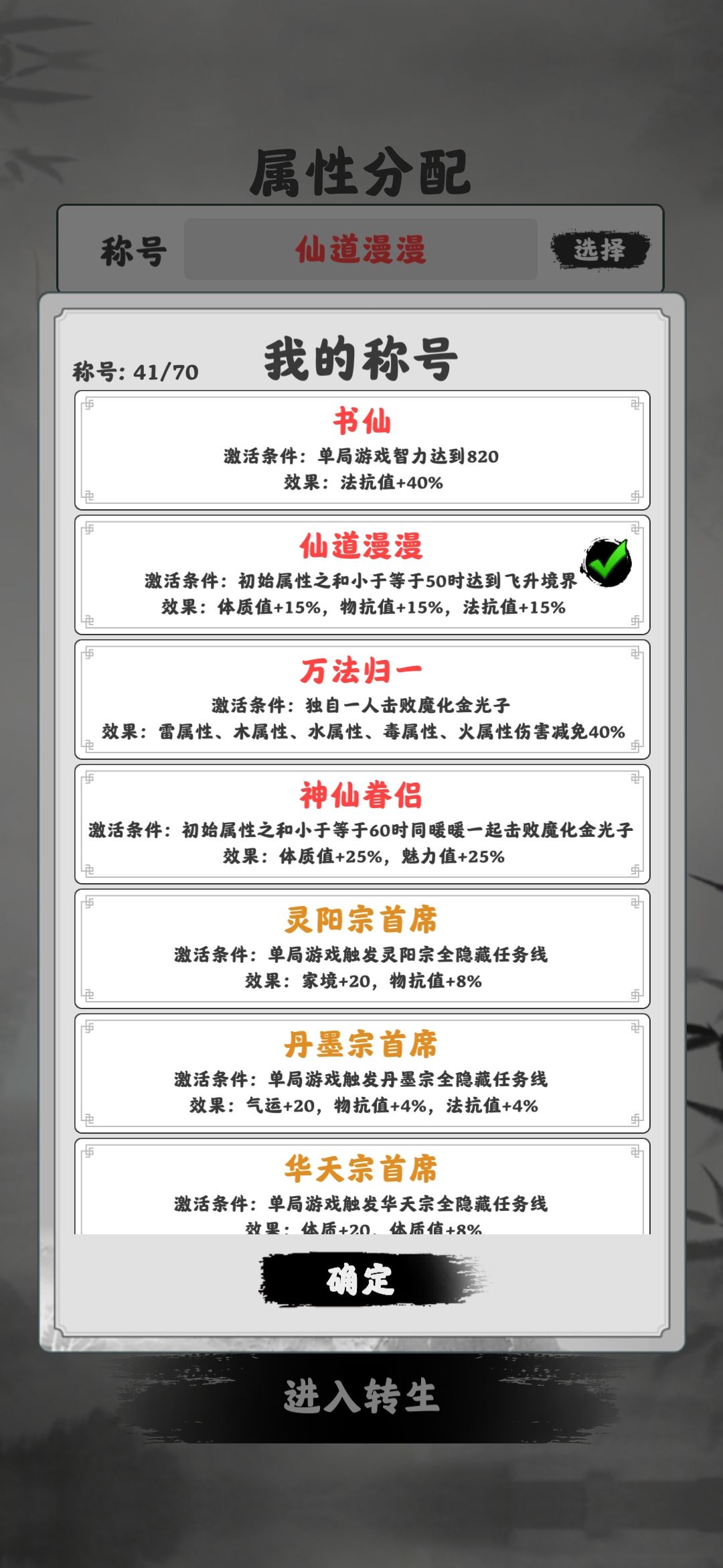 11、新手前期,建议玩几把后,先做个书仙称号或鬼王称号出来。然后带书仙做万法归一,然后就很容易渡劫飞升了。