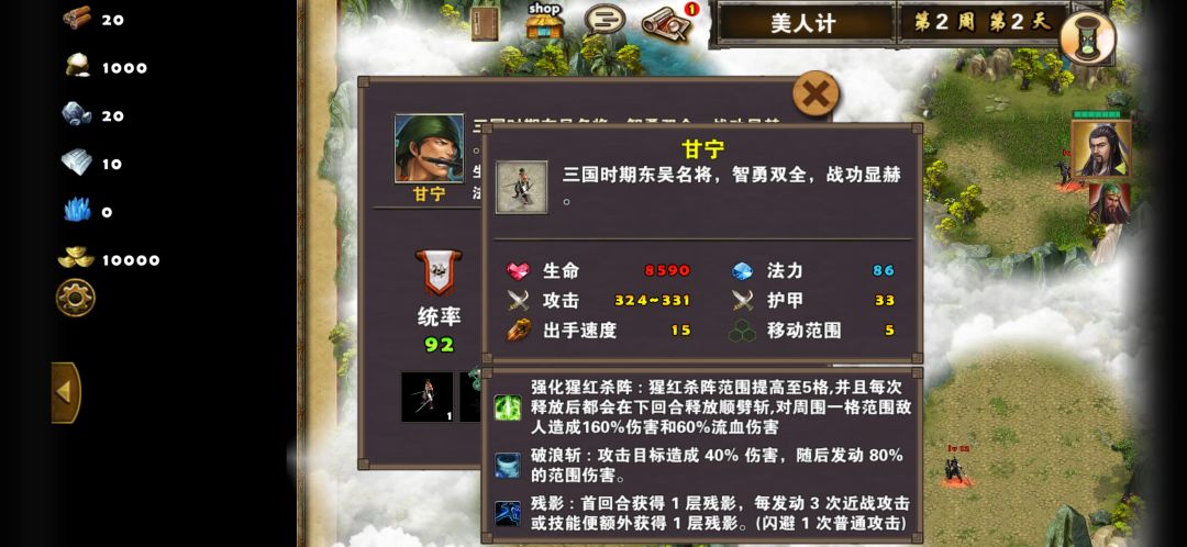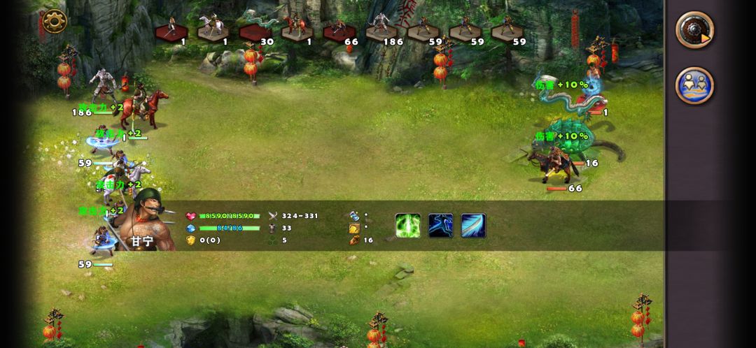 甘宁自带闪避一次,敌方如果没有远程兵种关羽可以晕他这样他的闪避就失效了我方两个射手就可以秒掉他,关羽在后动等敌方兵都聚集在关羽身边开大收割