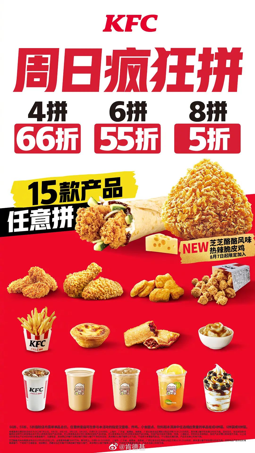4.从今天晚上开始,每周日有一个人v我50吃KFC周日疯狂拼৫(”ړ৫)
