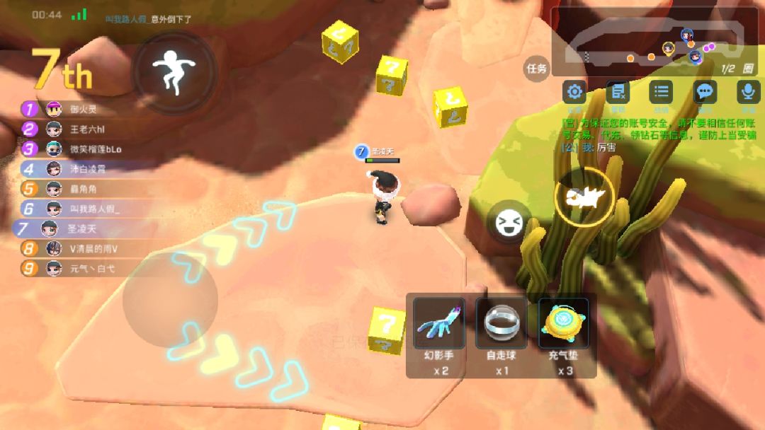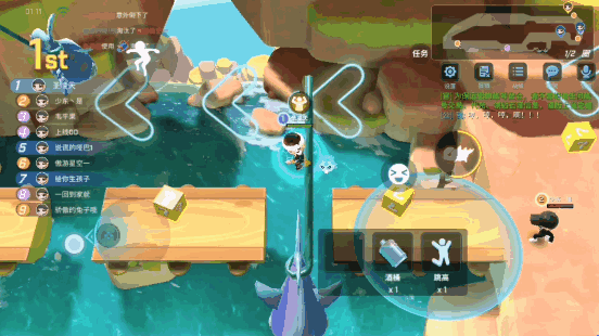 其次是滑板,自走球,跳高,加速类道具,跳着走