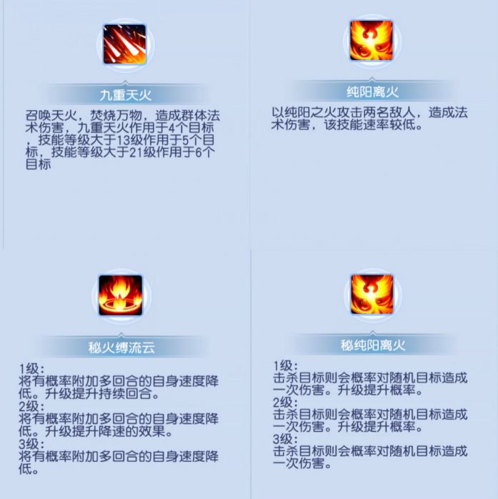 来,我们深度看一下三昧真火。本身这个技能就是持续伤害,再加上秘籍的效果,还能够降低目标受到的治疗效果,可以说,这个技能本身就已经算得上是非常克制那种残血的单位,在天赋能力怒焰的加成下,本身就是多出来的额外攻击,还附带上了自动锁定气血最低!两个好处,第一有可能直接击杀,第二锁定对面气血最低,给予我方指引进攻方向!一瞬间重阳宫可以说是服战中的热门职业!然而你以为到现在就算结束了吗?二转技能的到来才算是迎来巅峰!当然,二转技能也是区分为两个流派,小编以自己喜欢的地方为切入点!