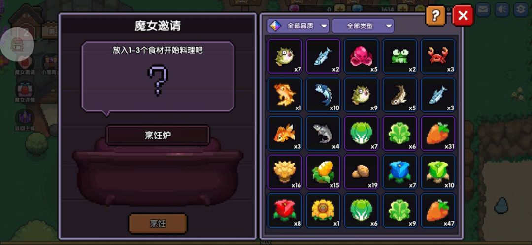 比较稀有的有章鱼 勇者蛙 大闸蟹 锦鲤(稀有鱼种不推荐拿去做菜 建议拿去送魔女最少也加3的好感)