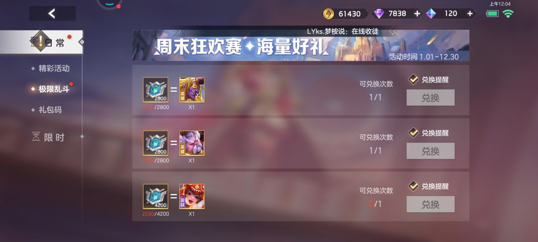 然后狂欢赛的皮肤,从出这个模式以来就这两英雄两皮肤,而且其他也是只能换星盘,建议可以换换新的英雄和皮肤了,希望可以加个龙晶卡兌换的。